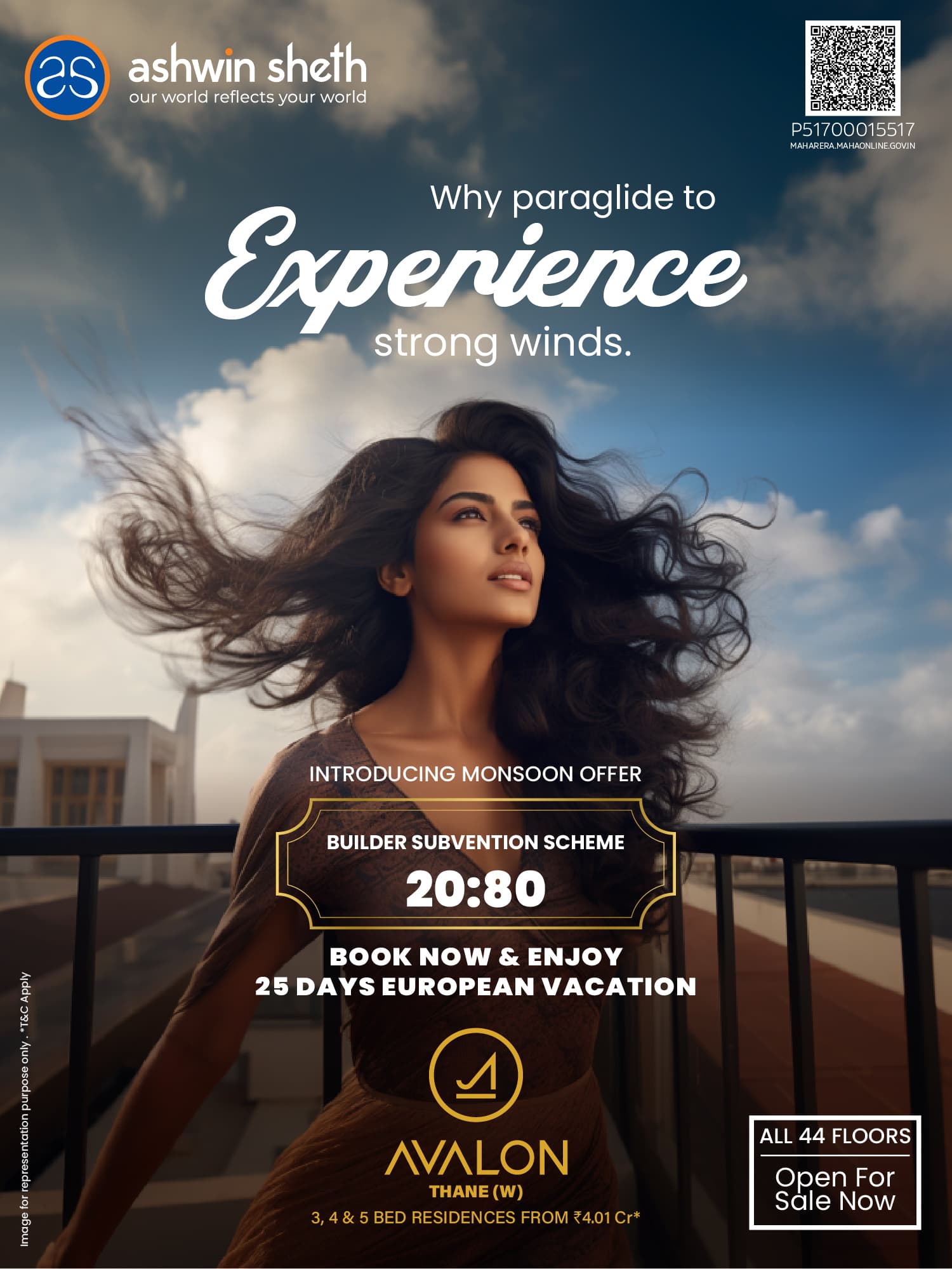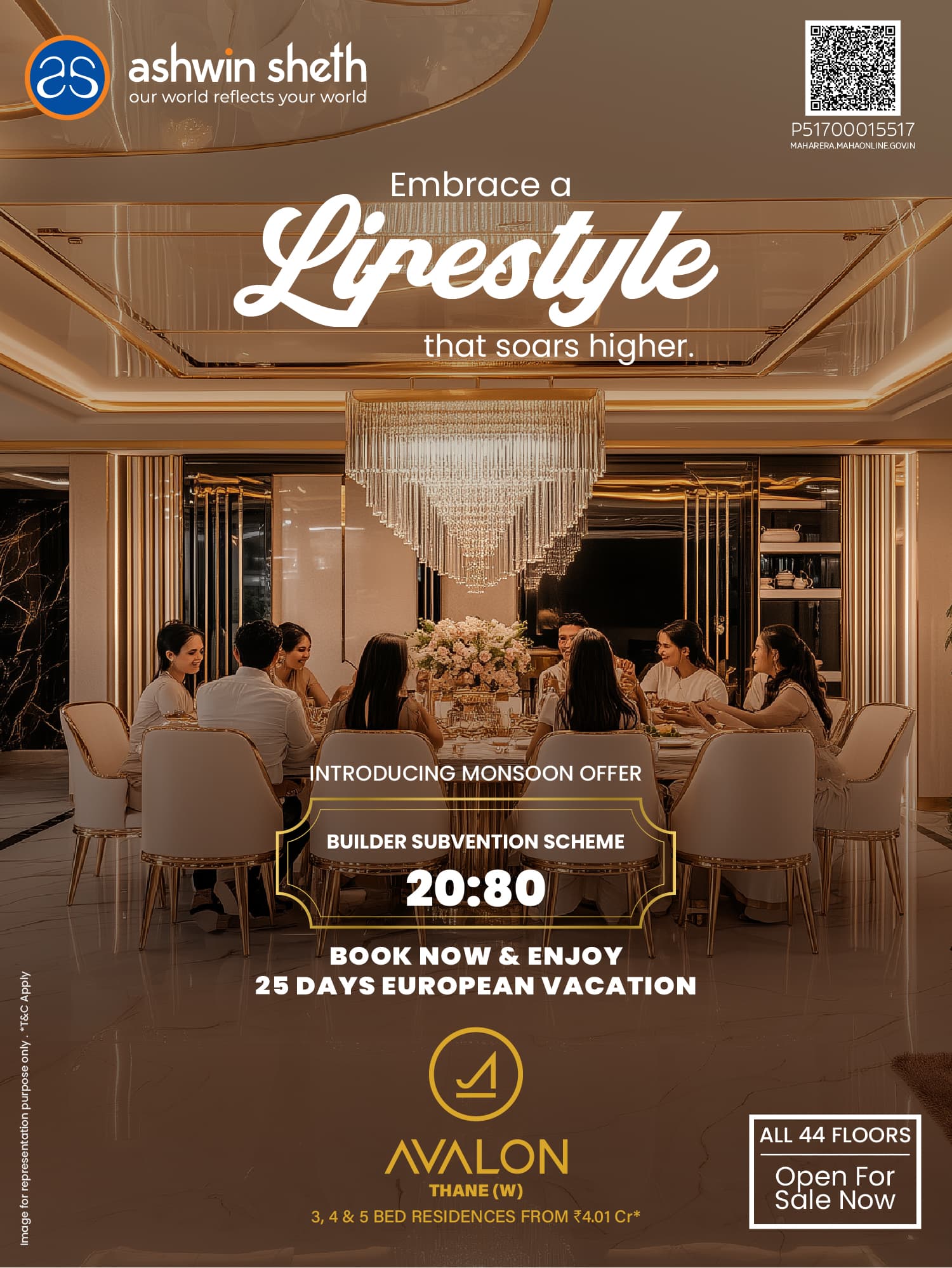 Sheth Avalon in prime Thane offers spacious 2, 3, 4 & 5 BHK homes with hill views, big balconies, sundecks & just 2 flats per floor. Enjoy top amenities & great connectivity to malls, schools, hospitals, metro & highways.